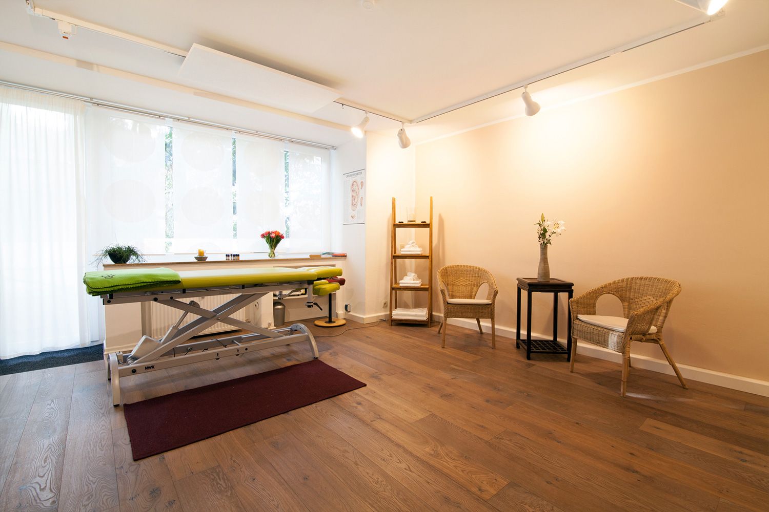 Die Praxis liegt in einer ruhigen Seitenstraße in Köln/Braunsfeld in der Nähe des Stadtwalds. In fünf Minuten Entfernung befindet sich eine Straßenbahnhaltestelle. Die Praxis ist eine Gemeinschaftspraxis. Es arbeitet noch eine weitere Heilpraktikerin mit dem Schwerpunkt Osteopathie dort.
